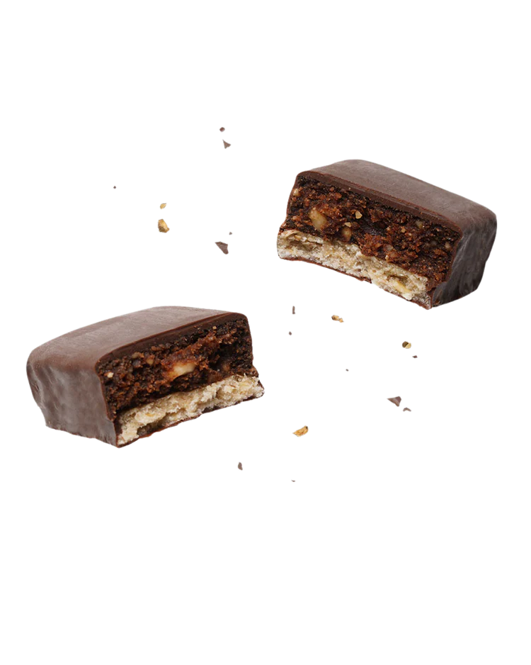 Datteln* (41 %), glutenfreie HAFERFLOCKEN*, HASELNÜSSE* (15 %), Zartbitterschokolade* (Kakaomasse*, Kokosblütenzucker*, Kakaobutter*) (13 %), Reissirup*, Kokosöl*, Kakaopulver*, Meersalz.