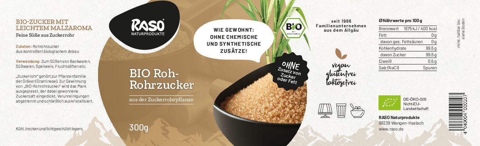 Diesen Bio Rohrohrzucker beziehen wir direkt von einem zertifizierten Bio-Lieferanten und füllen ihn in eigener Handarbeit im Allgäu ab.